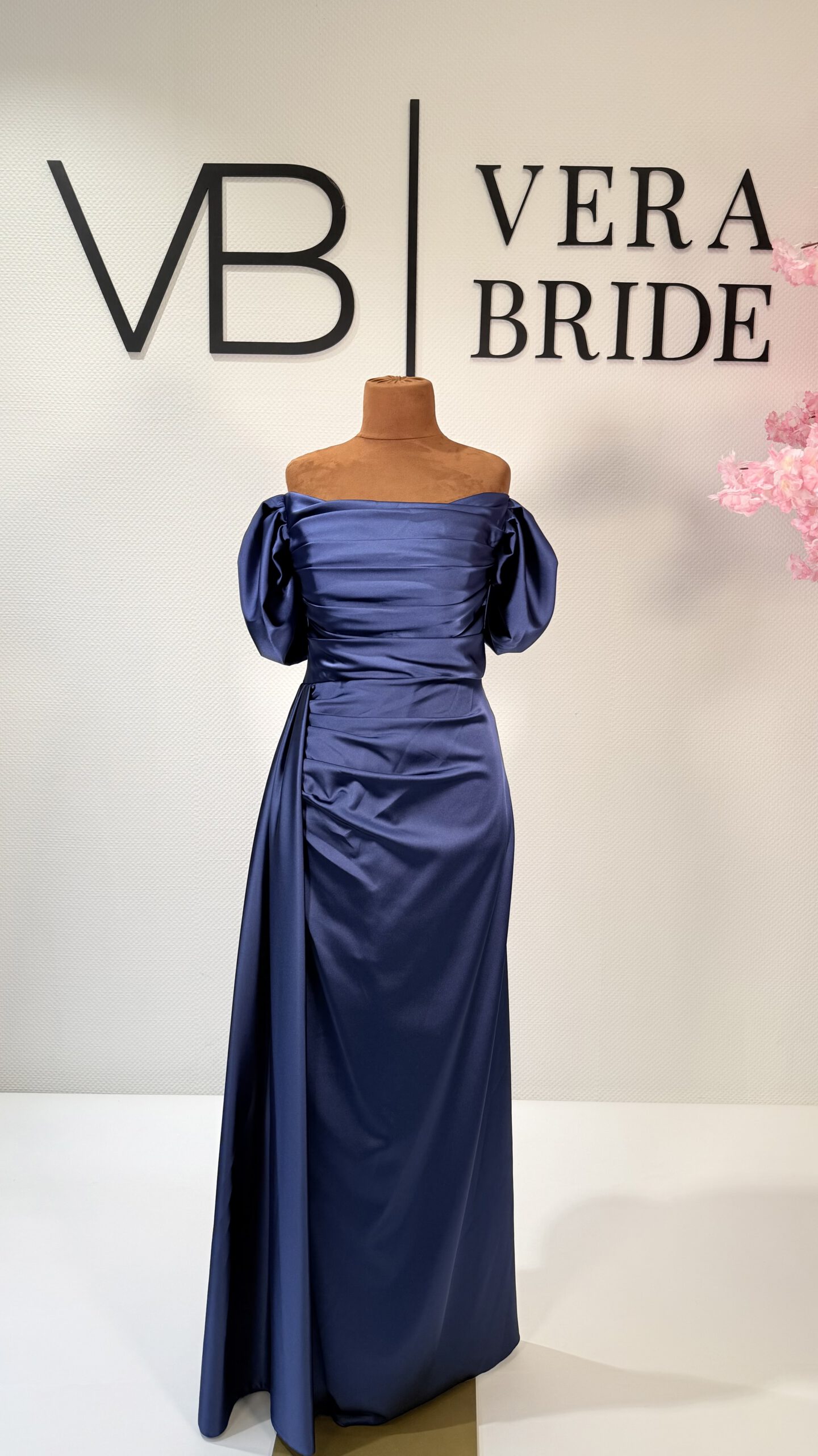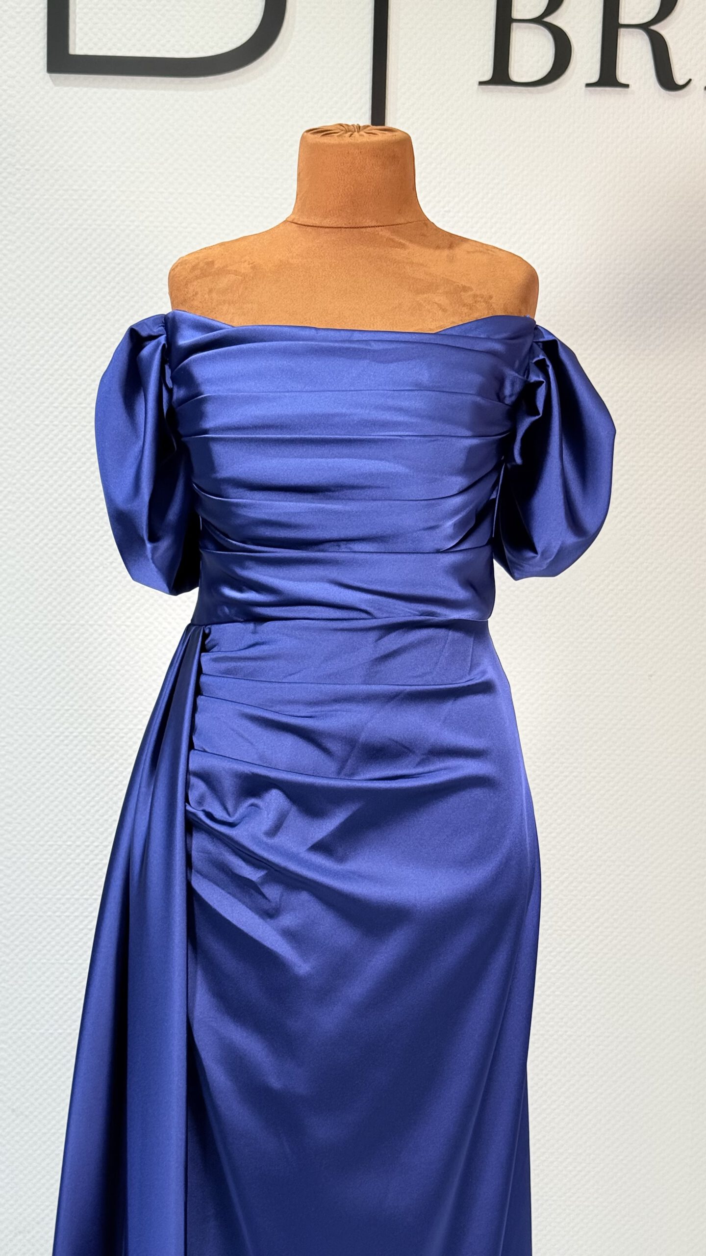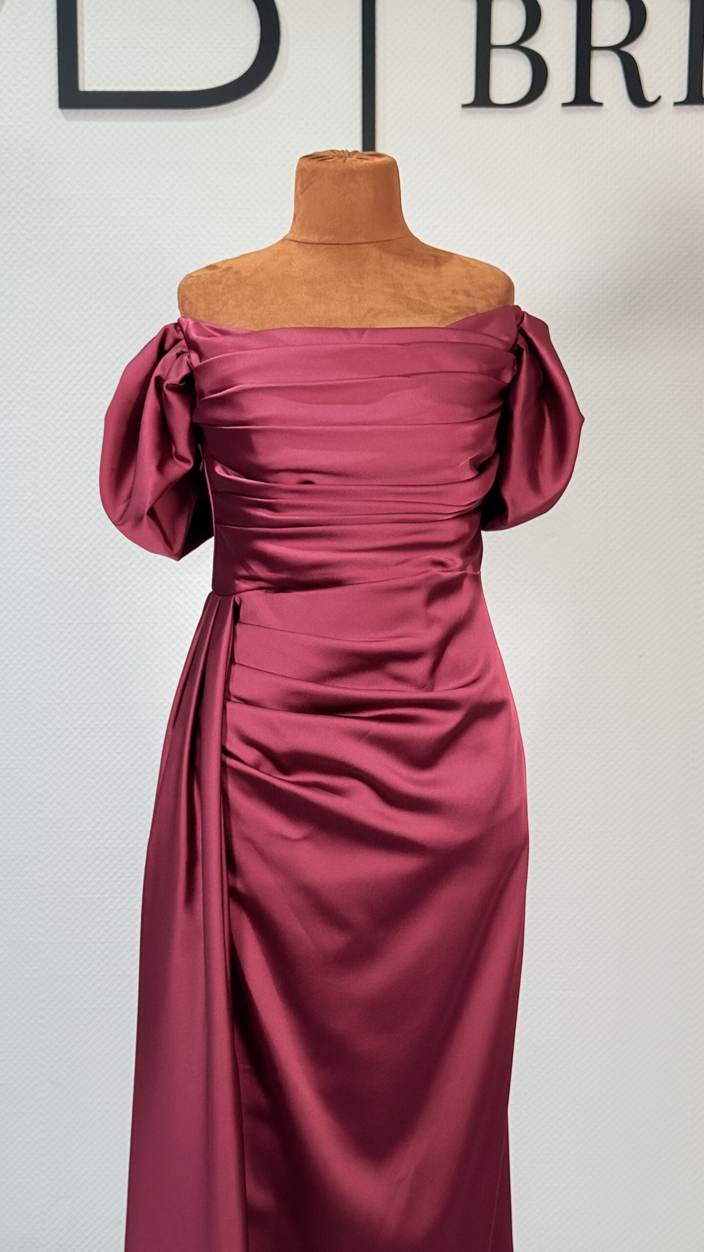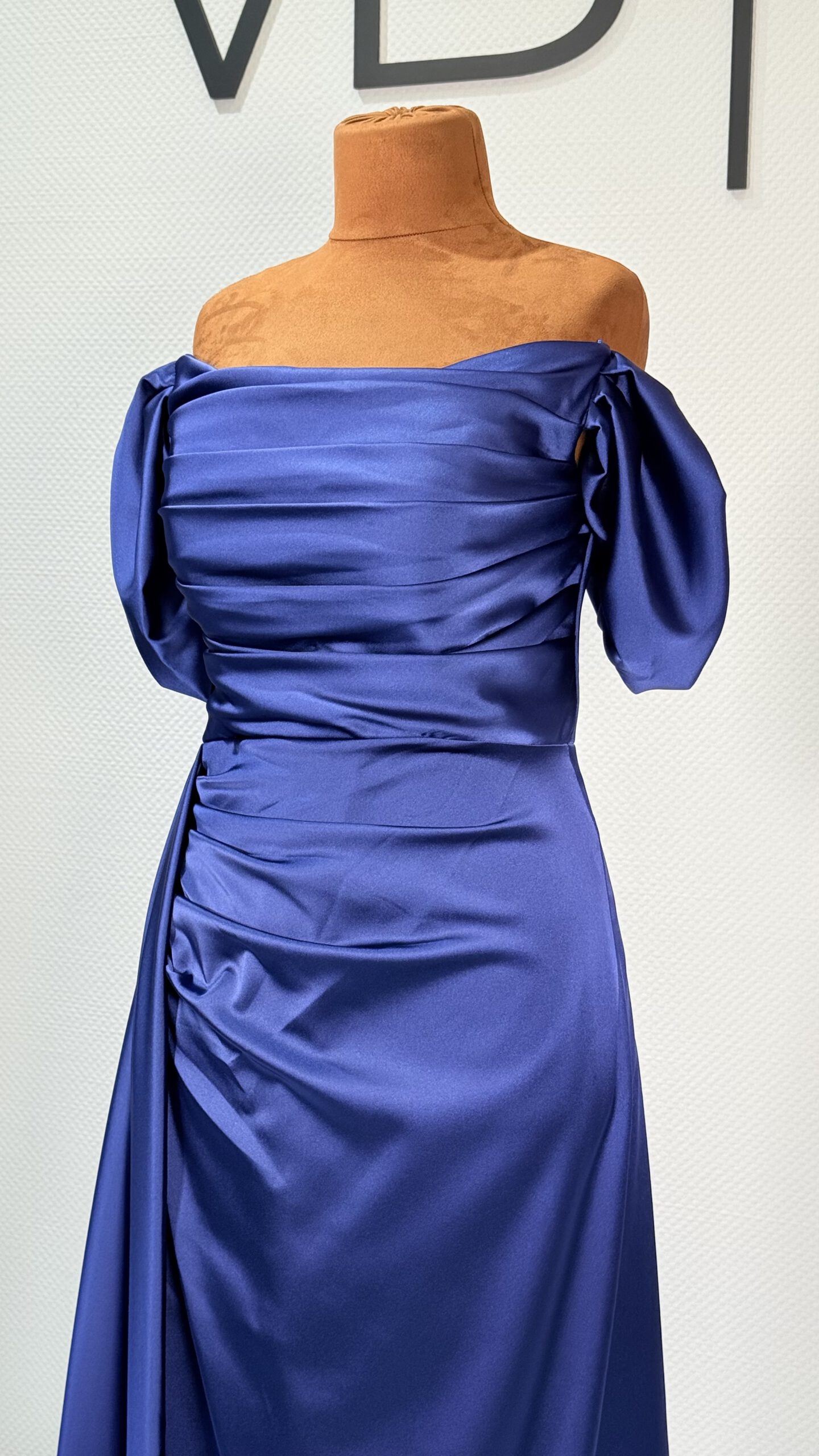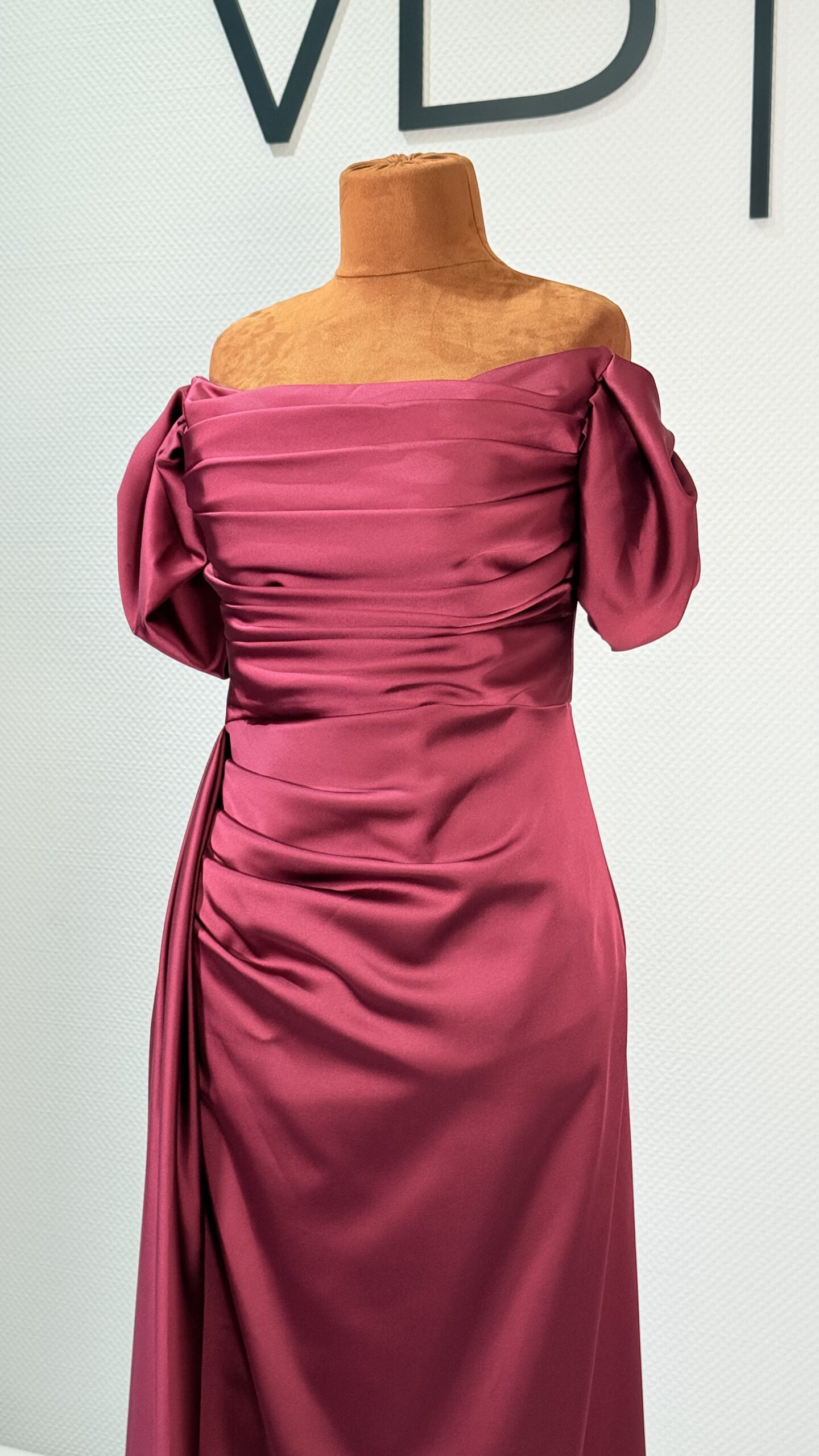 Elegantes Off Shoulder Abendkleid mit edlem Satin Glanz.