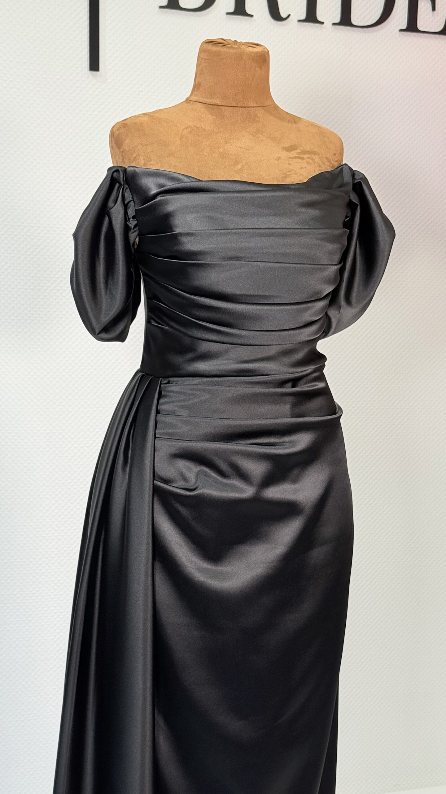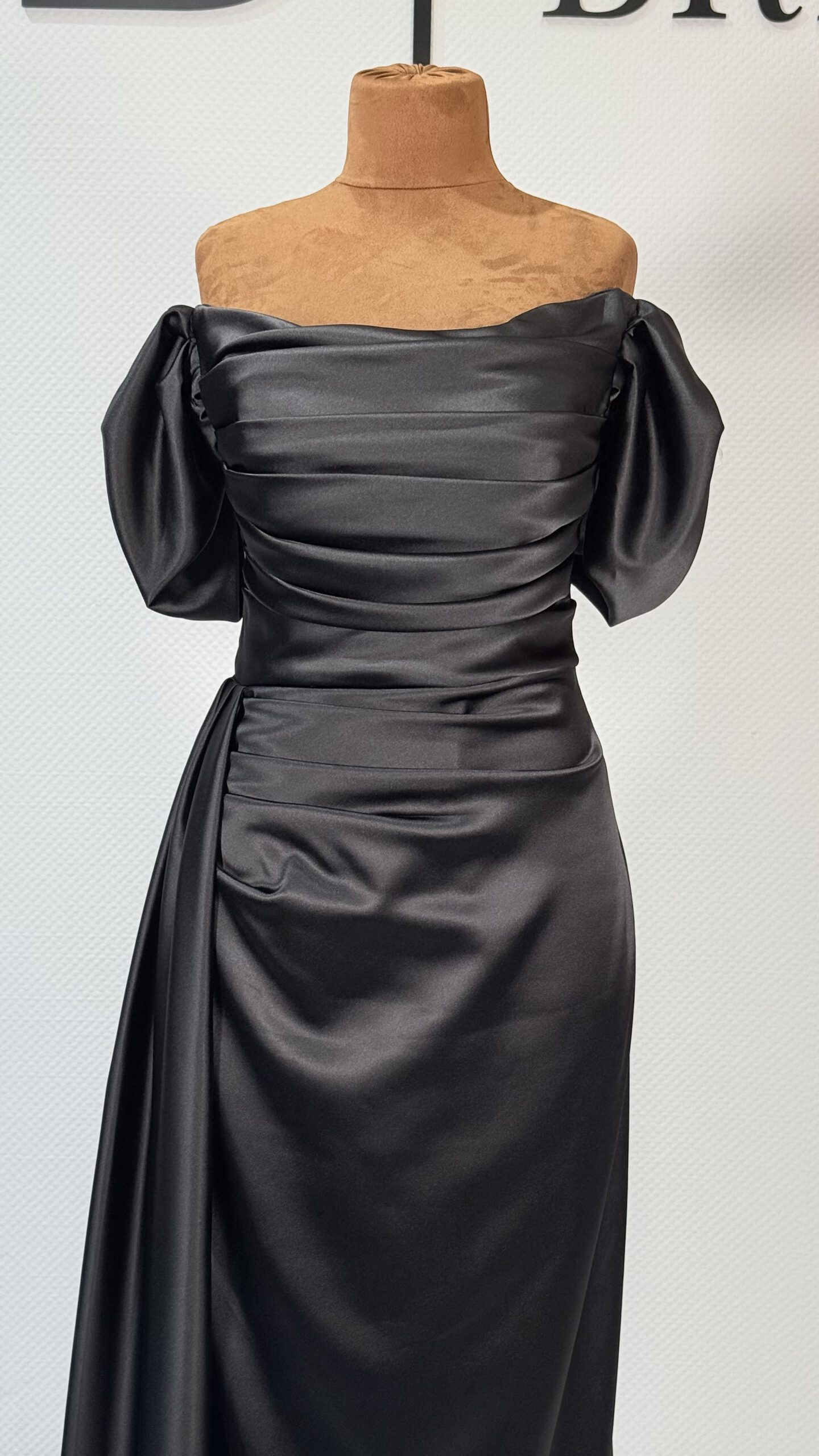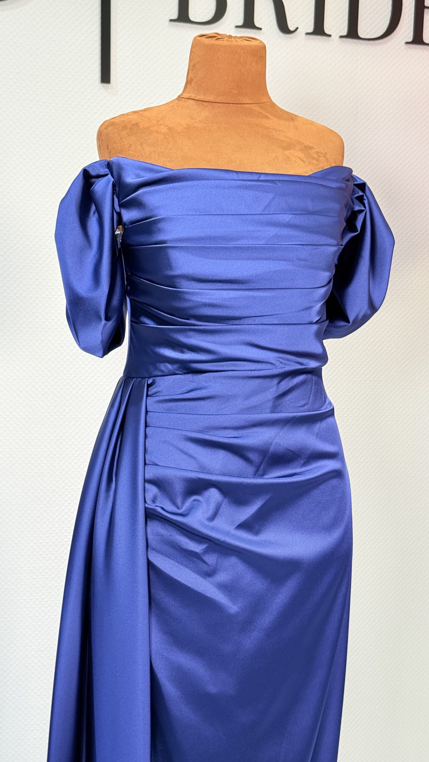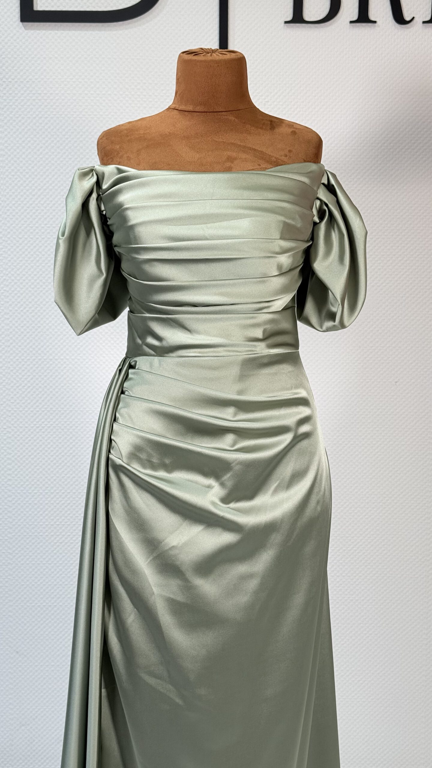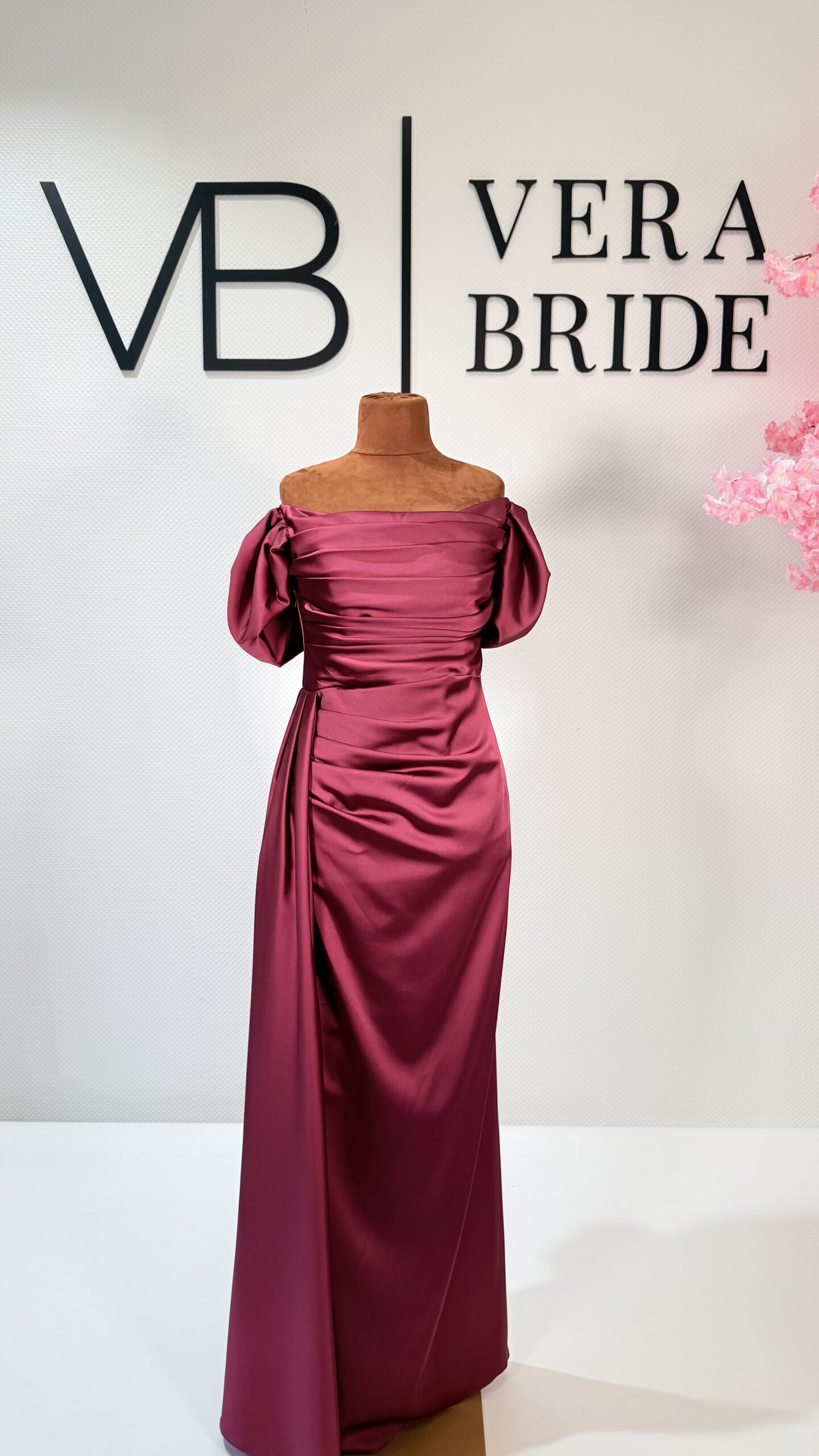 Elegantes Off Shoulder Abendkleid mit edlem Satin Glanz.